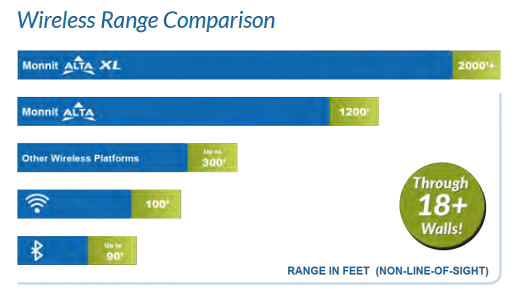 The ALTA IoT data communications platform offers delivery and reception reliability up to 2,000+ feet through 18+ walls. When you perform a signal reliability test in any area with the ALTA Site Survey Tool, you see the precise TRUESIGNAL™ reliability percentage shown on its LCD along with an indication of Pass, Poor, or Fail.